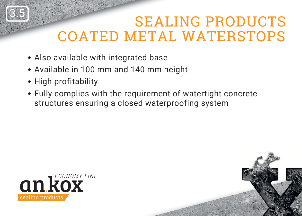 The bonding metal waterstop is one of the top performers in structural waterproofing. With its unique coating, it provides reliable protection against pressing water. Due to the special type of connection with the concrete, an insertion of only 3 cm in the first concrete section is sufficient.