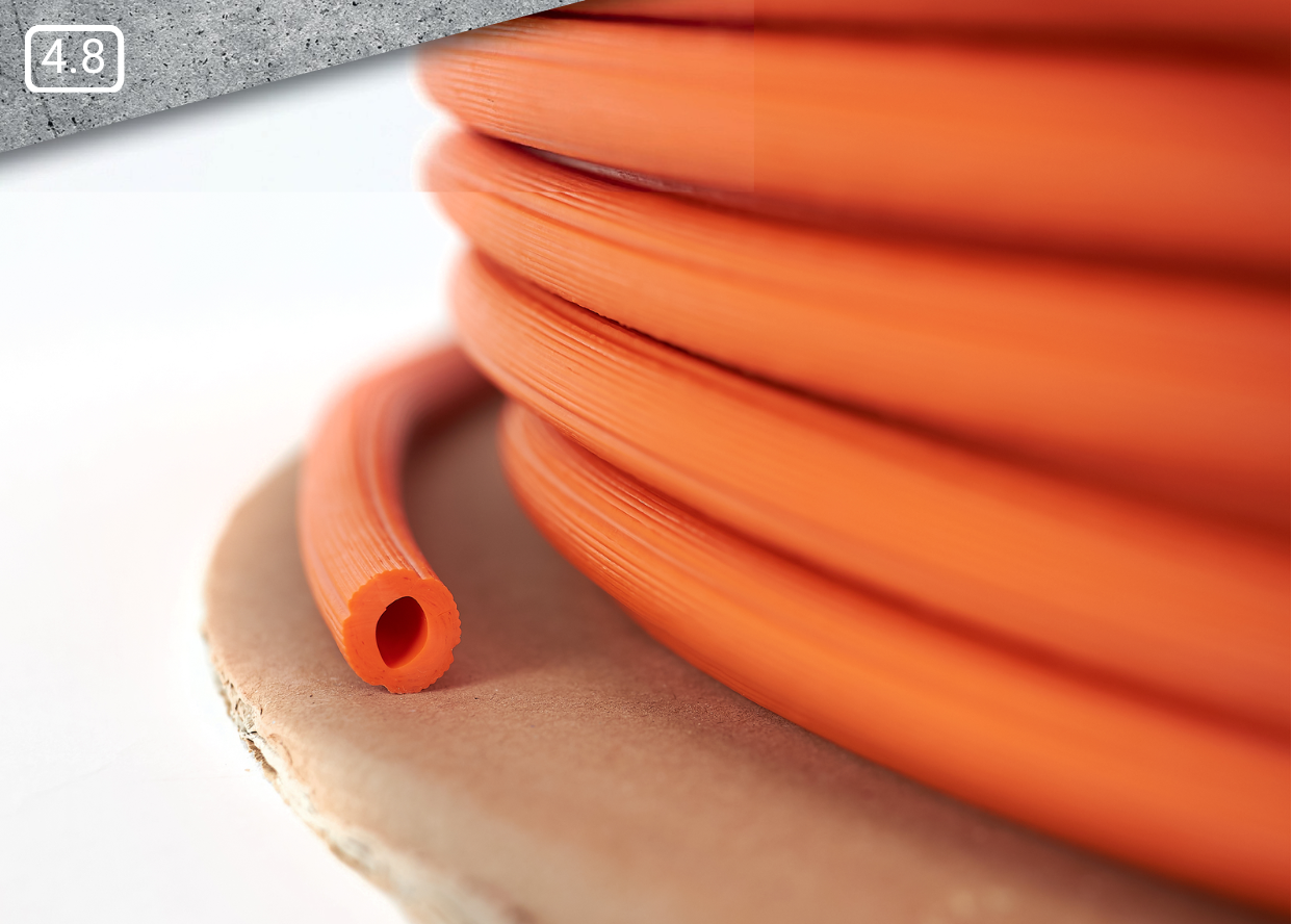 The injection hose is supplied in rolls on 100 metre spindles. Metre markings and technically advanced accessories simply its configuration. Special fixing clips allow for easy handling on the building site. The hose can also be fixed in position using the sealing paste: Polymer swellingpaste.
