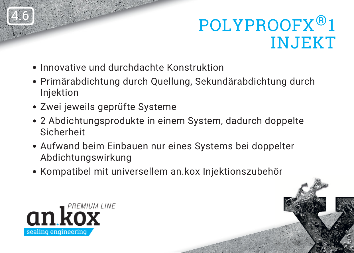 Zwei Produkte in einem bieten besonders hohe Abdichtungssicherheit. Die Kombination aus Quelldruck und Injektionsverfahren hält stark drückendem Wasser stand, auch unter Salzwasserbedingungen (Variante SW).