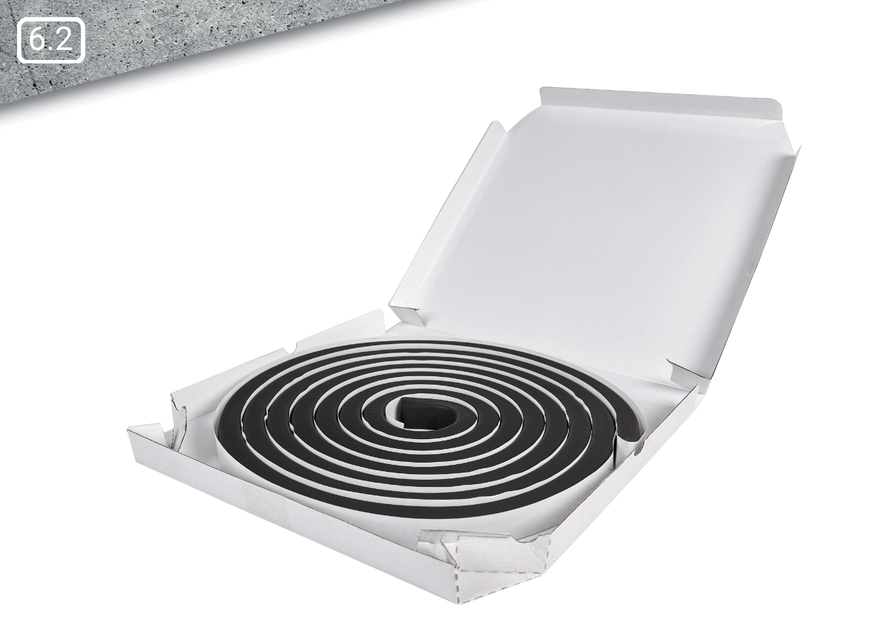 Das AbP-geprüfte Bentoproof black eignet sich ideal für die Abdichtung von Arbeitsfugen. Der Untergrund muss eben und frei von losen Bestandteilen sein. Der Einbau erfolgt zwischen der Bewehrung mittig der Fuge, damit das Band Quelldruck (Dichtungswirkung) entwickeln kann. Die Mindestbetondeckung nach allen Seiten beträgt 8 bis 10 cm.